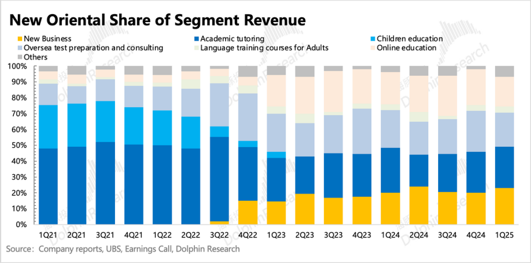 新东方北京时间10月23日美股盘前发布了2025财年第一季度的业绩,对应25年6月至8月包含暑期旺季的经营情况。这两个季度,因为直播业务的动荡,新东方的日子并不算太平。由于直播业务变动太大且海豚君短期并不看好,因此本次业绩点评主要聚焦在教育业务上:海豚君从覆盖新东方开始,就一直在强调素质教育的核心估值,弱化直播。q1核心教育收入12.7亿,符合上季度的指引。但管理层对q2教育收入增长指引在25%~28%区间,而这之前,公司给市场的一致是2025年30%以上的增长预期。先说留学业务,这也是管理层9月提前打了预防针的问题。公司解释为由于宏观对消费力的影响,高客单价的1v1留学辅导需求减弱,这部分流失的需求一部分转化成了便宜一些的班课。因此对留学业务的增长预期从20%-25%调整为15%-20%。海豚君认为,留学需求的放缓实际上还是有一定预期的。一方面,留学景气与疫情封锁有很大关联,因此随着距离放开的节点越来越长,需求放缓是大趋势。对于高中学科辅导业务,新东方对q2预期是20%的增长,同样低于此前的指引25%。海豚君认为,高中业务除了走出疫情红利的原因,还有本身新东方在学科辅导并不占主导优势的因素。在盘前的first take中,原本海豚君对素质教培的报名人次增速放缓至10%非常担忧。后续电话会中,管理层做了一定解释:今年暑期开课比去年要早一些,因此部分报名人次被统计进了上季度,管理层对q2新业务(素质教培、学习机、营学)的收入增速还在45%,其中素质教培和学习机合计收入增速在50%。如果按照管理层的说法,将q4、q1的报名人次合计来算同比,那么整体增速还有27%。但海豚君认为,哪怕增速被还原至27%,其放缓趋势也不可避免。并且27%的报名人次增速以及50%以上的收入指引,意味着,公司对客单价的增长预期仍然不低。客单价的增长,除了用户自身的付费需求提升外,就是公司本身进行涨价来拉动了。上季度,新东方、好未来等龙头相继宣布将加速扩容,预示着素质教育投入期一时半会还结束不了。q1新东方新开了64所学习中心,环比上季度扩张速度稍有放缓,但扩张节奏仍然超出市场预期。不过随着满班率的提升以及部分1v1转班课的变化,整体毛利率环比改善。与此同时,经营费用在投入期也在同步扩张,尤其是营销费用,同比增长41%。不过管理费用的增速要低于预期,因此带来了盈利beat。新东方账上现金挺多,预收学费的商业模式也使得它的现金流基本上没有太多担忧。但一季度因为剥离与辉同行,对自由现金流还是产生了不少影响。截至8月底,公司账面现金 短期投资,合计49亿美元,剔除掉以预收学费为主的递延收入17亿,可自由支配的净现金还有32亿。上季度管理层回购了250万股adr,耗用资金1.618亿美金,回购均价65美元/股。董事会进一步批准将回购计划延长至明年2025年5月,回购额度从4亿增加至7亿美金。这次财报,对于海豚君来说,除了q2教育收入增速指引miss,最大的疑问就是新东方素质教培的报名人次增速为何快速放缓?要说素质教培的需求熄火,海豚君还是有点不敢相信的。毕竟无论是从亲身体会,还是行业龙头们如火如荼的扩张动作,都表明这个行业的成长前景还非常可观,谈渗透到顶还早得很。但为什么新东方的报名人次增速滑落到只有10%了呢?后续电话会中,管理层做了一定解释:今年暑期开课比去年要早一些,因此部分报名人次被统计进了上季度,并且对q2新业务50%的增速仍然抱有信心。如果按照管理层的说法,将q4、q1的报名人次合计来算同比,那么整体增速还有27%。但继续依葫芦画瓢还原一下往季度的增速,实际上还是没有较好的解释整体放缓的原因。这是市场部分资金一直存在的一个担忧,毕竟从2023年开始,监管部门对于素质教培在逐步恢复牌照的发放。但理论上说,每月环比1%左右的发放速度,还是不够覆盖行业井喷的需求。不过,非规范的“小作坊”盛行,可能模糊了实际行业供给情况。但从另一角度来看,龙头们的满班率一直保持或提升中,至少说明小作坊的扰动可能也并没有想象中那么大。(2)因此,海豚君认为很可能是在学校扩容的爬坡期,产能跟不上虽然新东方季末学习中心数量1089所,同比增长了37%,但新中心从设立到正式运营、满班运营存在半年到一年的一个爬坡期,在此期间,教学设备、老师资源都需要同步配备。前两年新东方的学习中心在数量上虽然没有增加太多,但k9业务转型,可以直接复用原来的基础教学设备、老师,因此学习中心的爬坡速度会比当下更快,这才体现为报名人次增速远高于学习中心数量增速的情况。此外,最后再结合相对稳定的毛利率,也能在一定程度上说明,素质教培的景气度并未发生太多方向性的变动。因此建立在(2)的分析基础上,海豚君认为,新东方仍然具备长期跟踪的价值。但留学、高中业务的放缓和素质教培扩容爬坡拉长,势必会对短期业绩增速带来一定影响。(注:新东方财报仅披露部分业务表现,大部分经营情况&指引,在业绩公开电话会和机构小范围会议披露,因此稍后电话会内容相对比较重要,可加下方小助手微信入群,海豚君会第一时间发布纪要全文。)一季度总营收14.35亿,美元计价同比增长30.5%,略低于预期。其中剔除直播业务的核心教育收入为12.78亿,落在公司指引区间偏上沿。细分业务的情况一半在电话会公布,一半在机构小范围会议上公布。海豚君目前先给出拆分估
